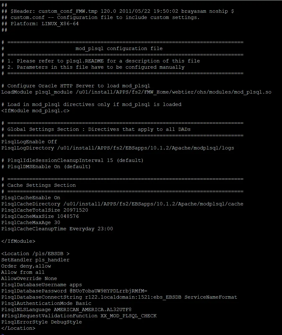 Mod_plsql is a module included in EBS 12.2 Apache web server. It can be used to develop web application pages using server PL/SQL. The following steps need to be taken to enable this module.